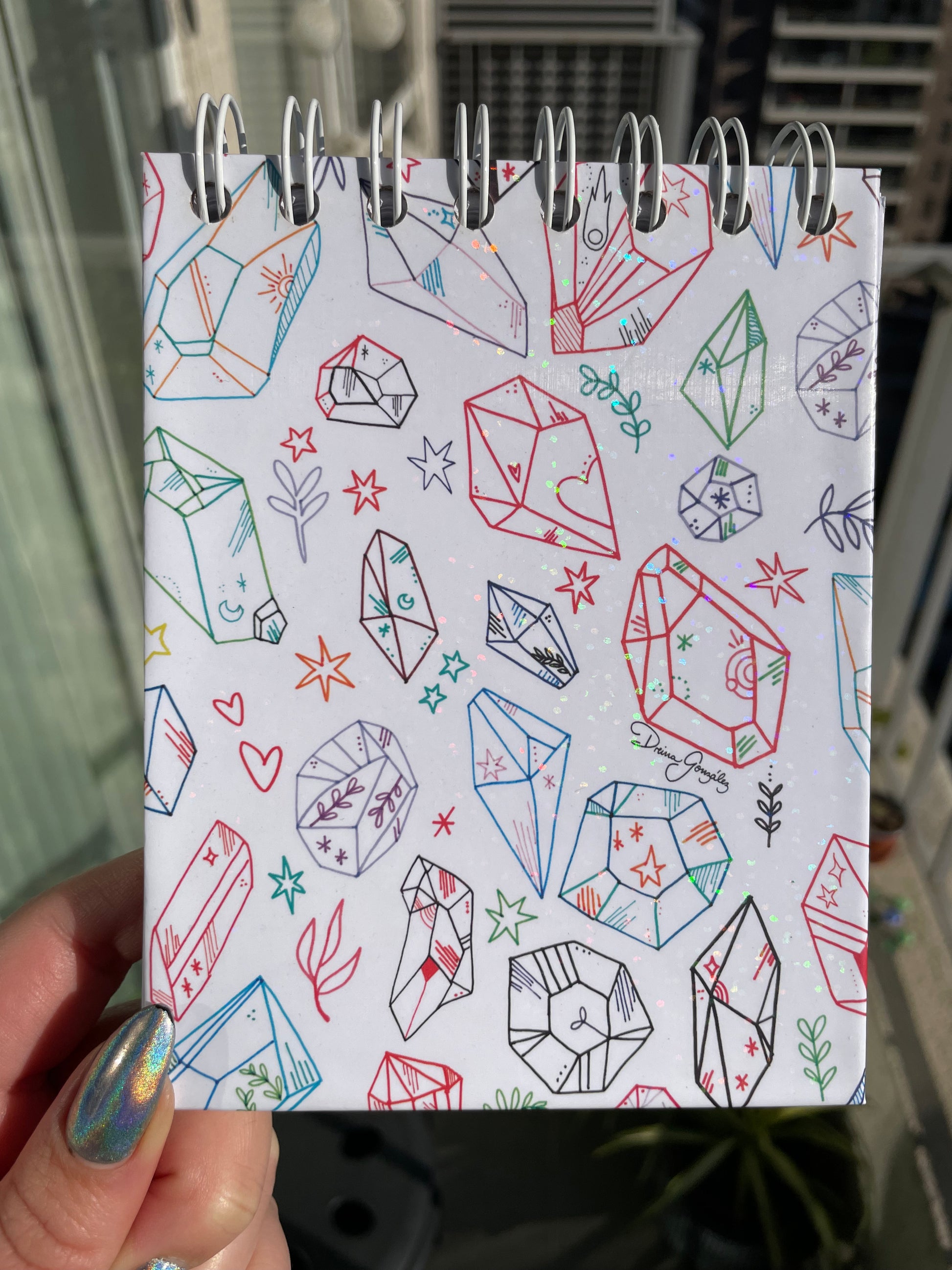 Croquera tapa dura con magico diseño de cristales. Ambas tapas con diseño de cristales y destellos holográficos.