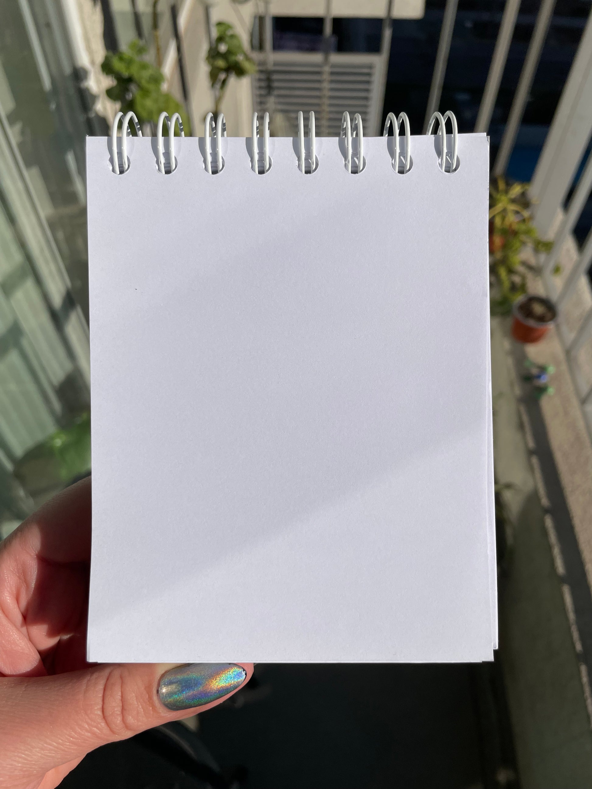 Formato A6 (14,8x10,5 cm) con 80 hojas de papel bond blanco 90 gramos.