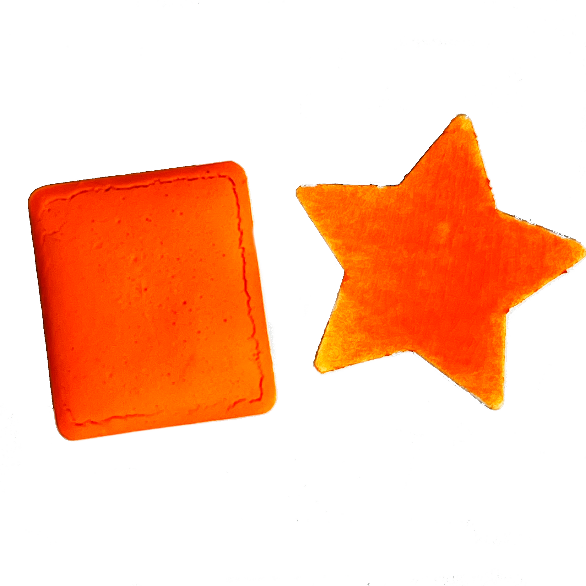 Pastilla de acuarela artesanal, 2 ml en color naranja neón, perfecta para dar un toque vibrante y único a tus creaciones. Color intenso de excelente cobertura.